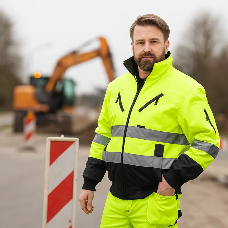 Il blouson XVERT assicura massima visibilità e sicurezza grazie al tessuto fluorescente e alle bande riflettenti certificate. Perfetto per chi lavora in aree trafficate o con scarsa illuminazione.
