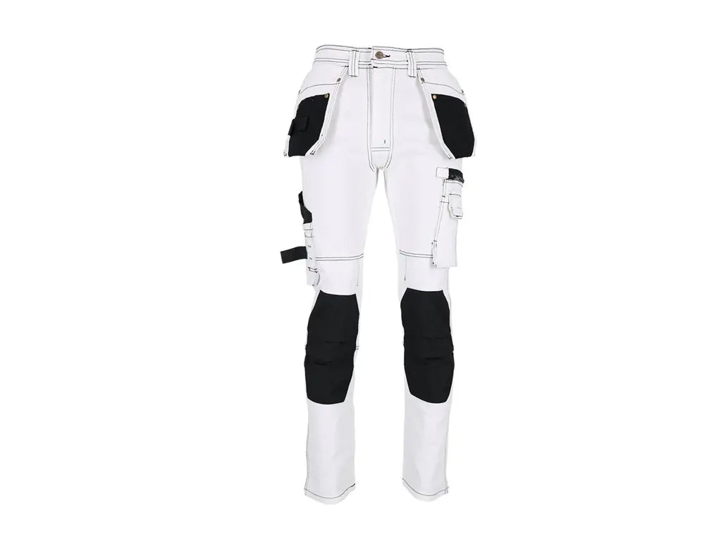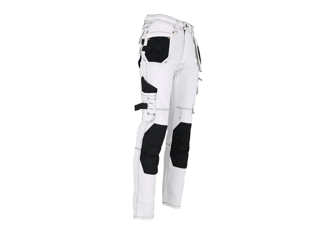 Realizzati in denim elasticizzato con grammatura 260–300 g/m², questi pantaloni offrono il giusto equilibrio tra robustezza e flessibilità: