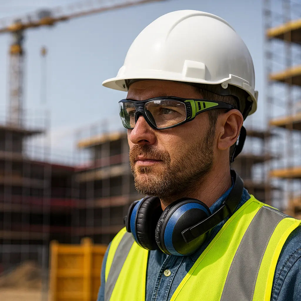 Protezione certificata – EN 166, resistenza d’impatto F (sfera 0,86 g a 45 m/s) e compatibilità con caschi/otoprotettori: pronti per il cantiere.