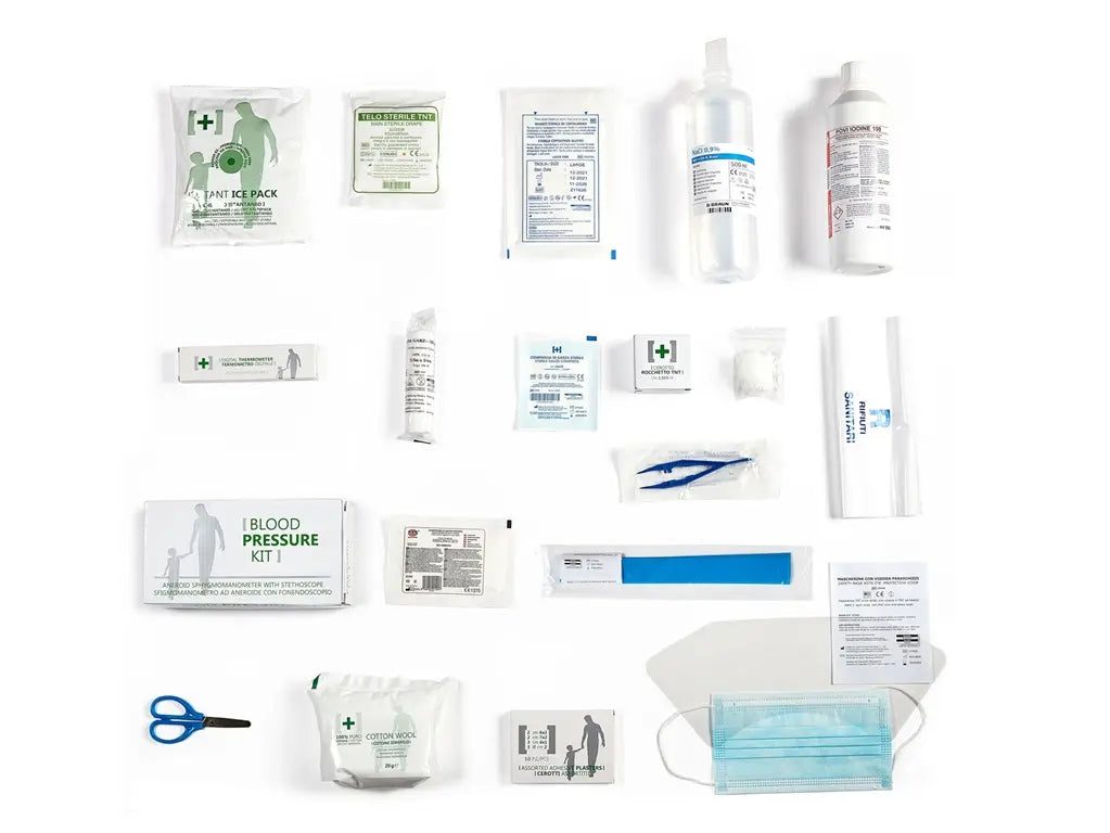 Progettato per aziende con tre o più lavoratori, questo pacco reintegro contiene tutti i presidi medici obbligatori e include anche il misuratore di pressione arteriosa, come previsto dalle linee guida ministeriali.